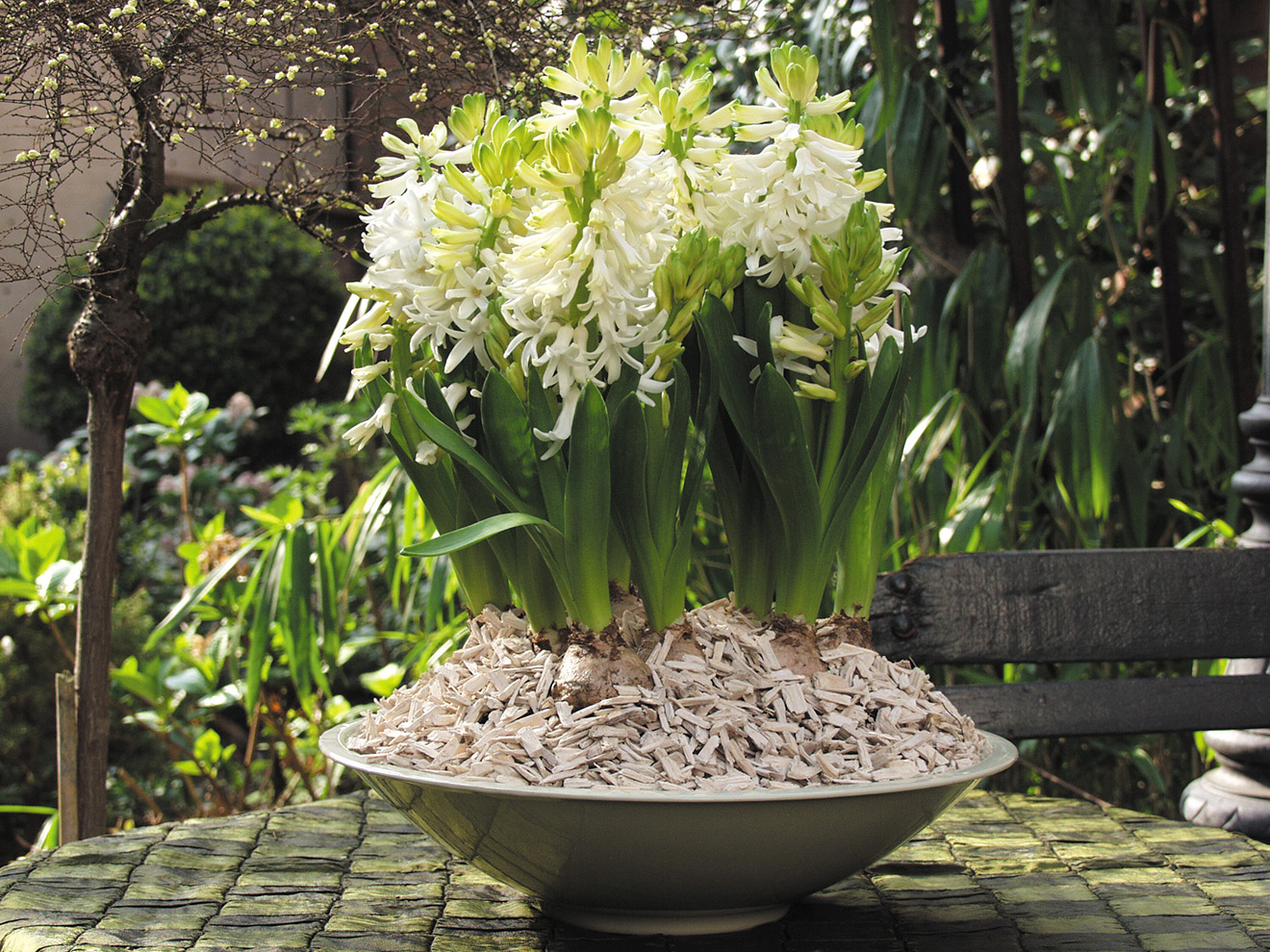 The bulbs are also suitable for use outdoors. If you place them in a basket or container or plant them in the soil, this immediately creates a cheerful atmosphere in the garden or on the balcony. Because it’s still cool outside in the months from January to April, you can enjoy the bulbs for a long time.